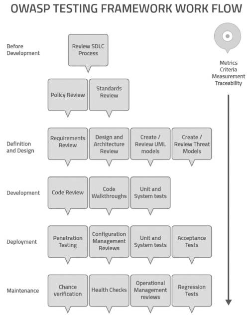 OWASP est une communauté dont l’objectif est d’aider les organisations à devenir plus efficaces dans la protection de leurs systèmes sur Internet en proposant des recommandations (OWASP Testing Framework, OWASP Developer Guide) et en mettant régulièrement à jour un inventaire des dix types de menaces liées à la sécurité les plus critiques pour les applications web : injection, violation de gestion d’authentification et de session, cross-site scripting (XSS), références directes non sécurisées à un objet, mauvaise configuration de sécurité, exposition de données sensibles, manque de contrôle d’accès au niveau fonctionnel, falsification de requête inter-sites (CSRF, Cross-Site Request Forgery), utilisation de composants avec des vulnérabilités connues, redirection et renvois non validés.