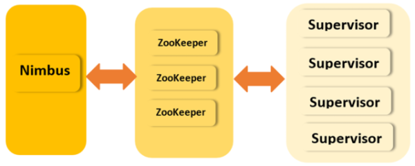 Nimbus communique avec ses superviseurs via un coordonnateur appelé ZooKeeper. L’état de fonctionnement de chaque démon (Nimbus et superviseurs) est maintenu dans Zookeeper ou sur le disque local. De cette façon, en cas d’arrêt de Nimbus et des superviseurs, ceux-ci vont commencer à remonter comme si de rien n’était.