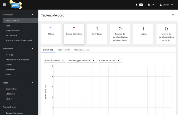 Nous voici connecté à l'interface AWX.