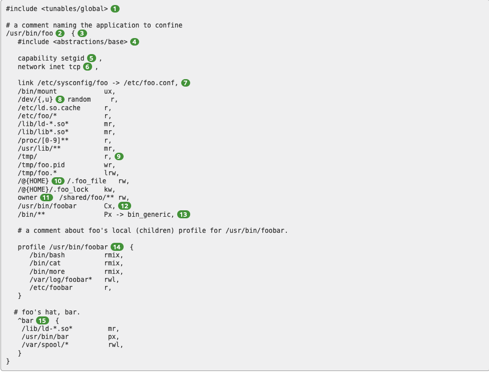 Un profile apparmor est lisible et plutôt claire ( du moins par rapport à selinux )