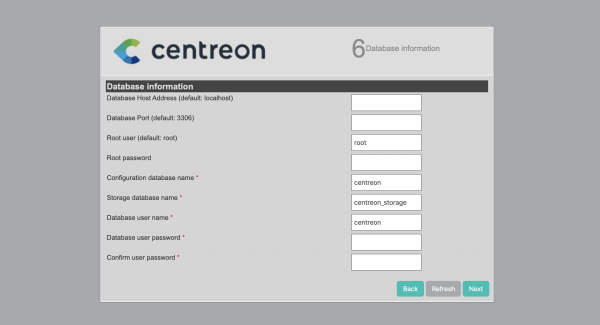 La base de données MySQL doit être disponible pour pouvoir continuer l’installation (localement ou non). Pour information centreon recommande MariaDB.