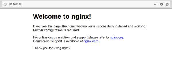 Pour visualiser la page par défaut de notre serveur web “nginx”, il nous suffira de récupérer l'adresse IP de notre container avec la commande précédente, “docker inspect <NAMES>/<CONTAINER ID>” puis de lancer le binaire “elinks” :