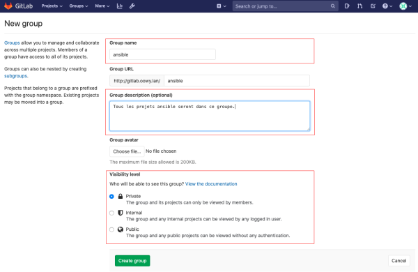 - soit dans un groupe existant : https://[URL]/groupe/nom-du-projet