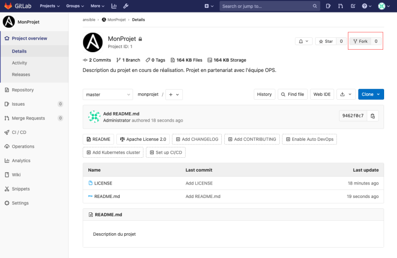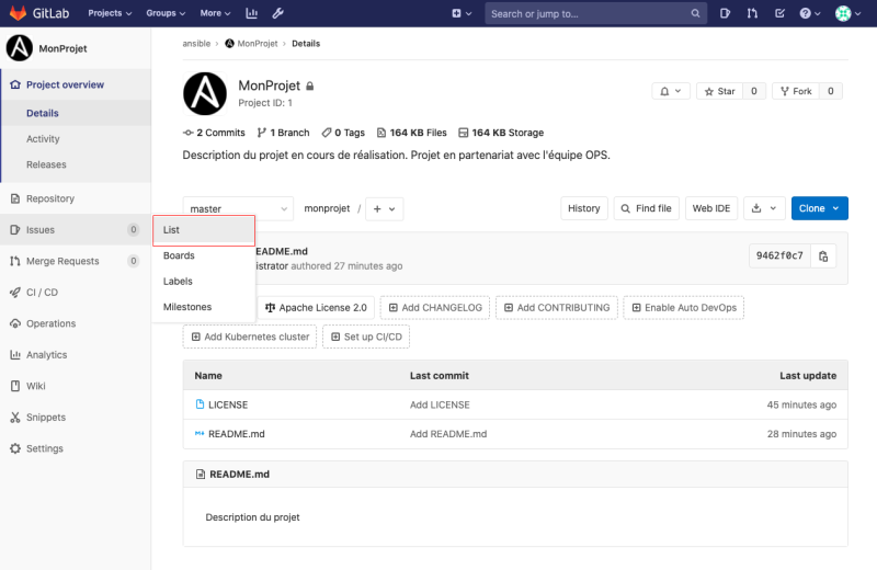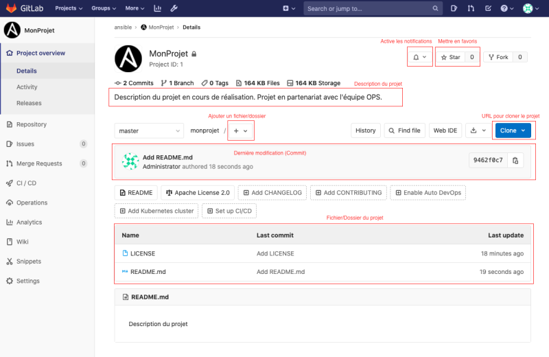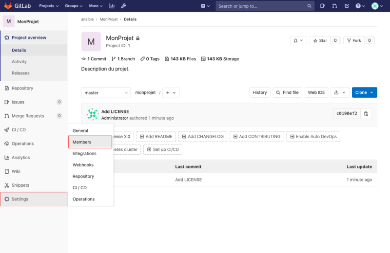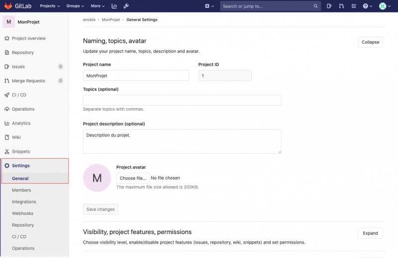- Activer/désactiver les issues/pipelines/wikis/snippets si vous n'en avez pas besoin (cella allège l'affichage)