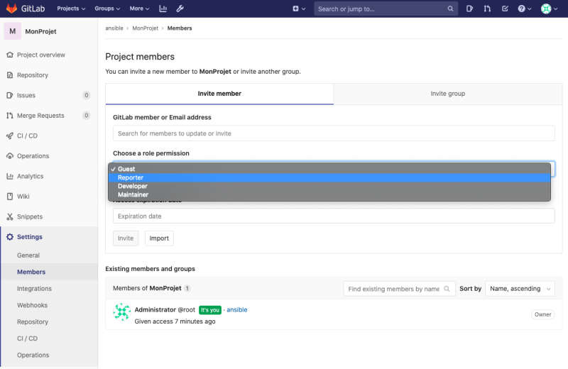 Les utilisateurs ont des permissions différentes selon le niveau d'accès qu'ils ont dans un groupe ou un projet particulier.