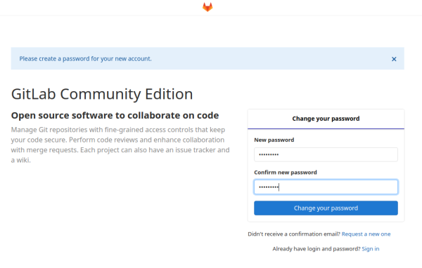Pour les URLs “https://”, GitLab demandera automatiquement un certificat avec Let's Encrypt, qui nécessite un accès HTTP entrant et un nom d'hôte valide. Vous pouvez également utiliser votre propre certificat ou simplement utiliser “http://”.