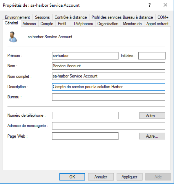 Accédez à votre serveur Active Directory et créez un compte qui sera utilisé par Harbor pour se lier au serveur.