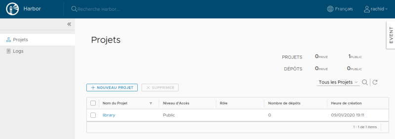 Un projet dans Harbor contient tous les référentiels d'une application. Aucune image ne peut être envoyée à Harbor avant la création du projet. La RBAC s'applique à un projet.