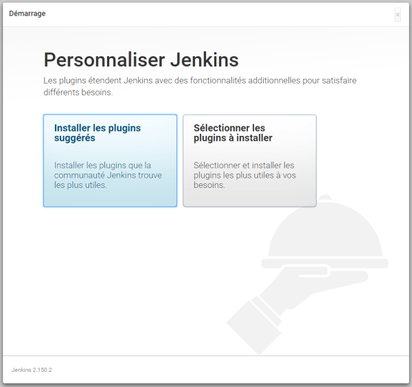 Jenkins vous propose d’installer les plugins par défaut ou de sélectionner vous mêmes les plugins que vous souhaitez installer. Vous pouvez effectuer le choix par défaut. Tout en sachant qu’il sera toujours possible d’ajouter des plugins une fois l’installation terminée.