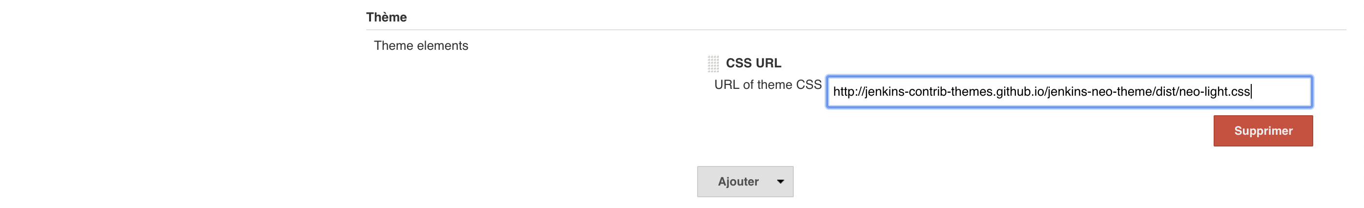 Ajouter l'url suivante : http://jenkins-contrib-themes.github.io/jenkins-neo-theme/dist/neo-light.css