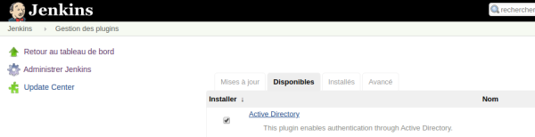 Installer le plugin “Active directory” via Manage Jenkins > Manage Plugins