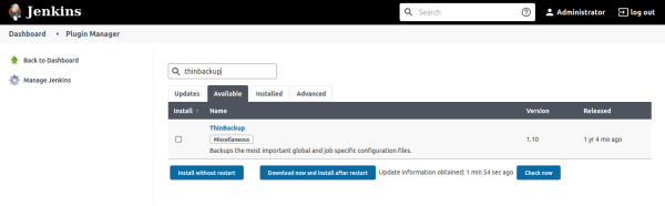 Cliquez sur l'onglet “Available” et recherchez “ThinBackup”.