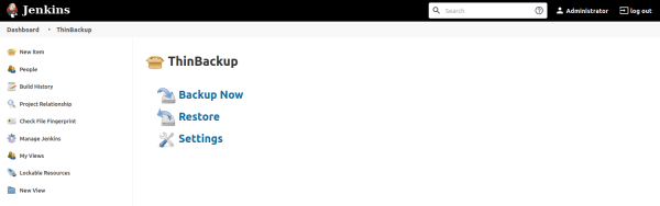Une fois le plugin installé, allez sur “Manage Jenkins” > “ThinBackup” et cliquez sur “Settings”.