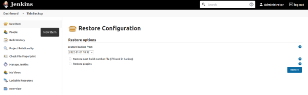 Pour restaurer une sauvegarde réalisé avec ThinBackup, il nous suffira de nous rendre dans “Restore” et de sélectionner dans la liste déroulant la sauvegarde que l'on souhaite.