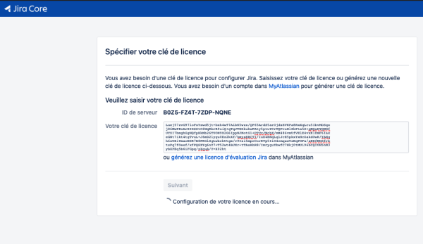 Entrer la clé de licence du produit, cliquez sur “Suivant”