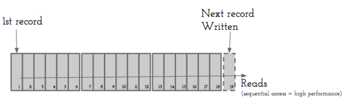 - Chaque nouvelle donnée sera ajoutée à la « fin » du log (append only).