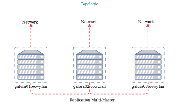 L'objectif ici est de préparer un cluster MariaDB Galera multi-maître synchrone pour MariaDB, à savoir que chaque noeud du cluster pourra être utilisé aussi bien en lecture qu'en écriture, la réplication des données devant être déployés sur chacun des noeuds.