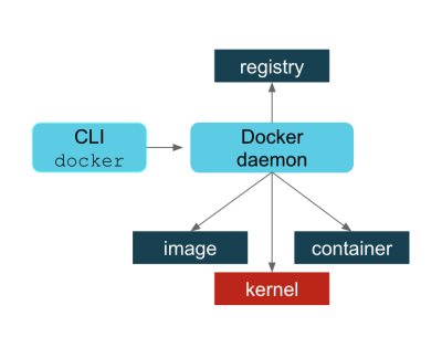 - Essentiellement, le démon Docker fait tout le travail avec les registres, les images, les conteneurs et le noyau. L'interface de ligne de commande (CLI) Docker demande au démon de le faire en votre nom.