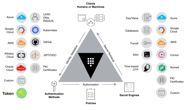 Vault est une sorte de coffre fort. Celui-ci stocke des secrets sous forme d’arbre. Ceux-ci peuvent être un mot de passe, un token ou un compte MySQL selon le module utilisé.