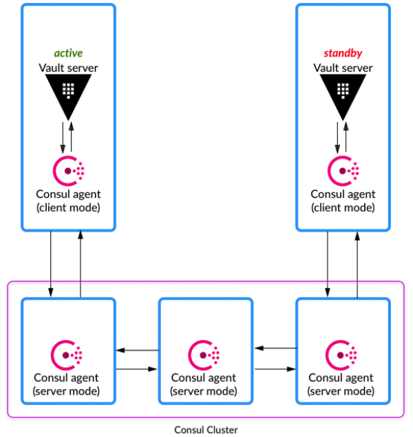 [root@vault001 ~]# consul members Node Address Status Type Build Protocol DC Segment consul001 192.168.1.101:8301 alive server 1.8.0 2 dc1 <all> consul002 192.168.1.102:8301 alive server 1.8.0 2 dc1 <all> consul003 192.168.1.103:8301 alive server 1.8.0 2 dc1 <all> vault001 192.168.1.81:8301 alive client 1.8.0 2 dc1 <default> vault002 192.168.1.82:8301 alive client 1.8.0 2 dc1 <default>