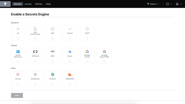 - Secrets Engine - Un moteur des secrets est responsable de la gestion des secrets. De simples moteurs à secrets comme le moteur à secrets “kv” renvoient simplement le même secret lorsqu'ils sont interrogés. Certains moteurs de secrets permettent d'utiliser des politiques pour générer dynamiquement un secret chaque fois qu'ils sont interrogés. Cela permet d'utiliser des secrets uniques, ce qui permet à Vault d'effectuer des révocations et des mises à jour de politiques à grain fin. Par exemple, un moteur de secrets MySQL pourrait être configuré avec une politique “web”. Lorsque le secret “web” est lu, un nouveau couple utilisateur/mot de passe MySQL sera généré avec un ensemble limité de privilèges pour le serveur web.