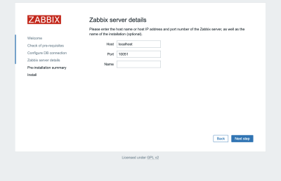 Le Name est facultatif ; il est utilisé dans l'interface web pour distinguer un serveur d'un autre dans le cas où vous avez plusieurs serveurs de surveillance. Cliquez sur Next step pour continuer.