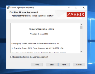 Double-cliquez sur le programme d'installation MSI de Zabbix que vous avez téléchargé à l'étape précédente et cliquez sur “Next” comme indiqué dans l'image ci-dessous.