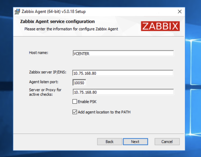 Définissez le “Nom d'hôte (Host name)” personnalisé ou utilisez le nom de domaine pleinement qualifié (FQDN) de la machine Windows dans le champ “Host Name”. Ensuite, entrez l'adresse IP du serveur Zabbix dans les champs “Zabbix server IP/DNS” et “Server or Proxy for active checks” et vous avez terminé.