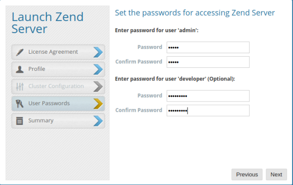 On définie un mot de passe pour l'utilisateur “admin” ainsi que pour l'utilisateur “developer”.