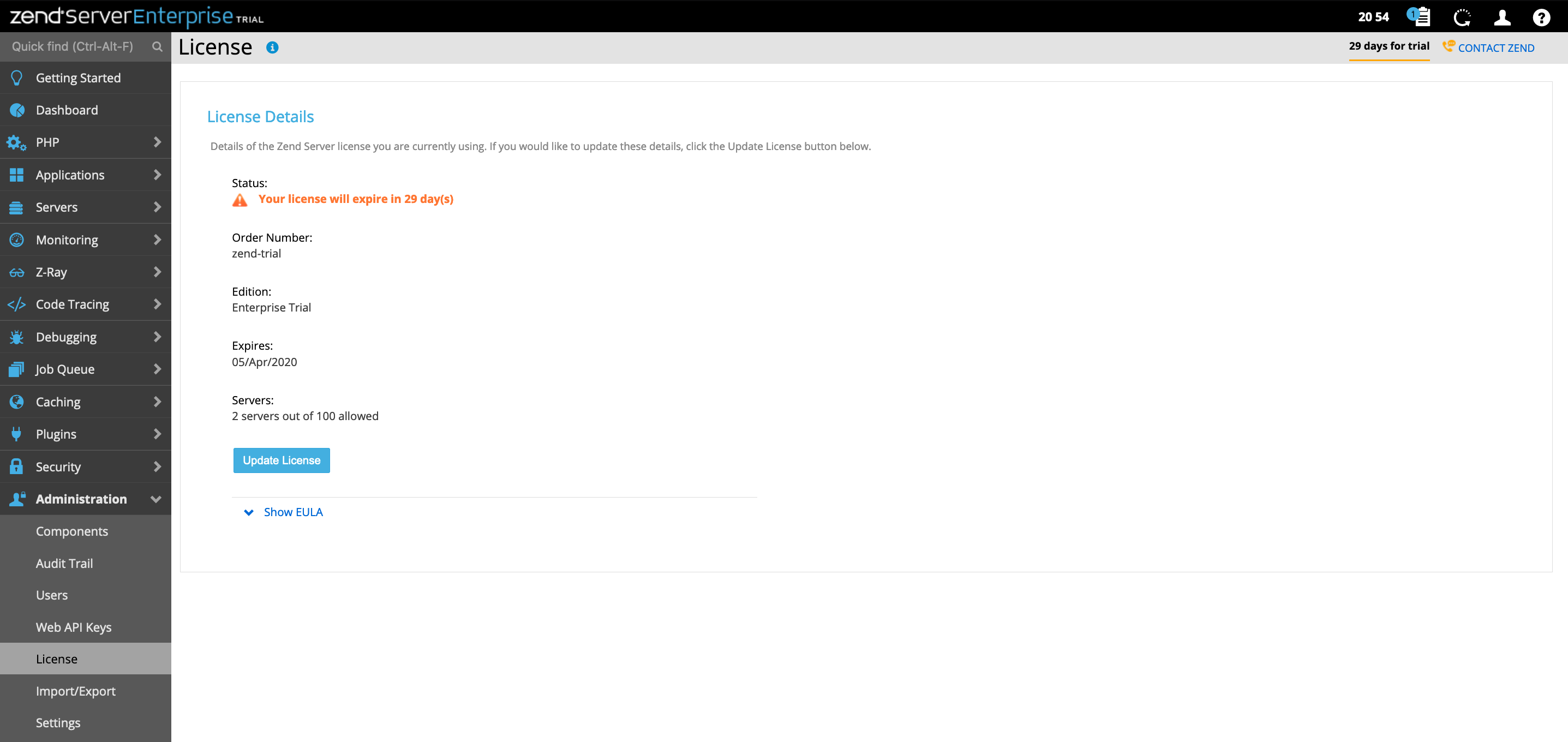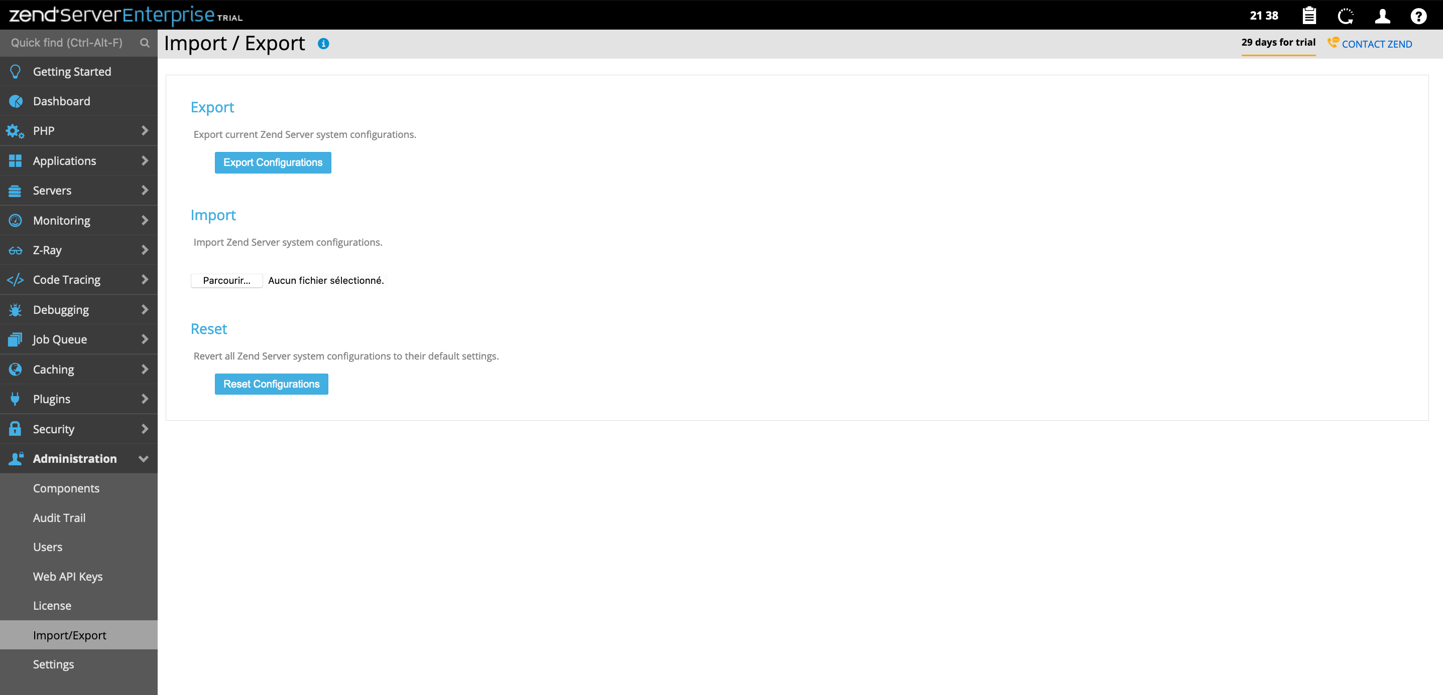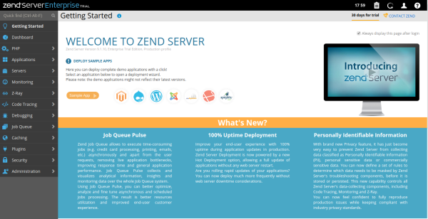 Lors de l'installation de la plateforme de Zend Server, nous disposerons de 30 jours d'essaie.
