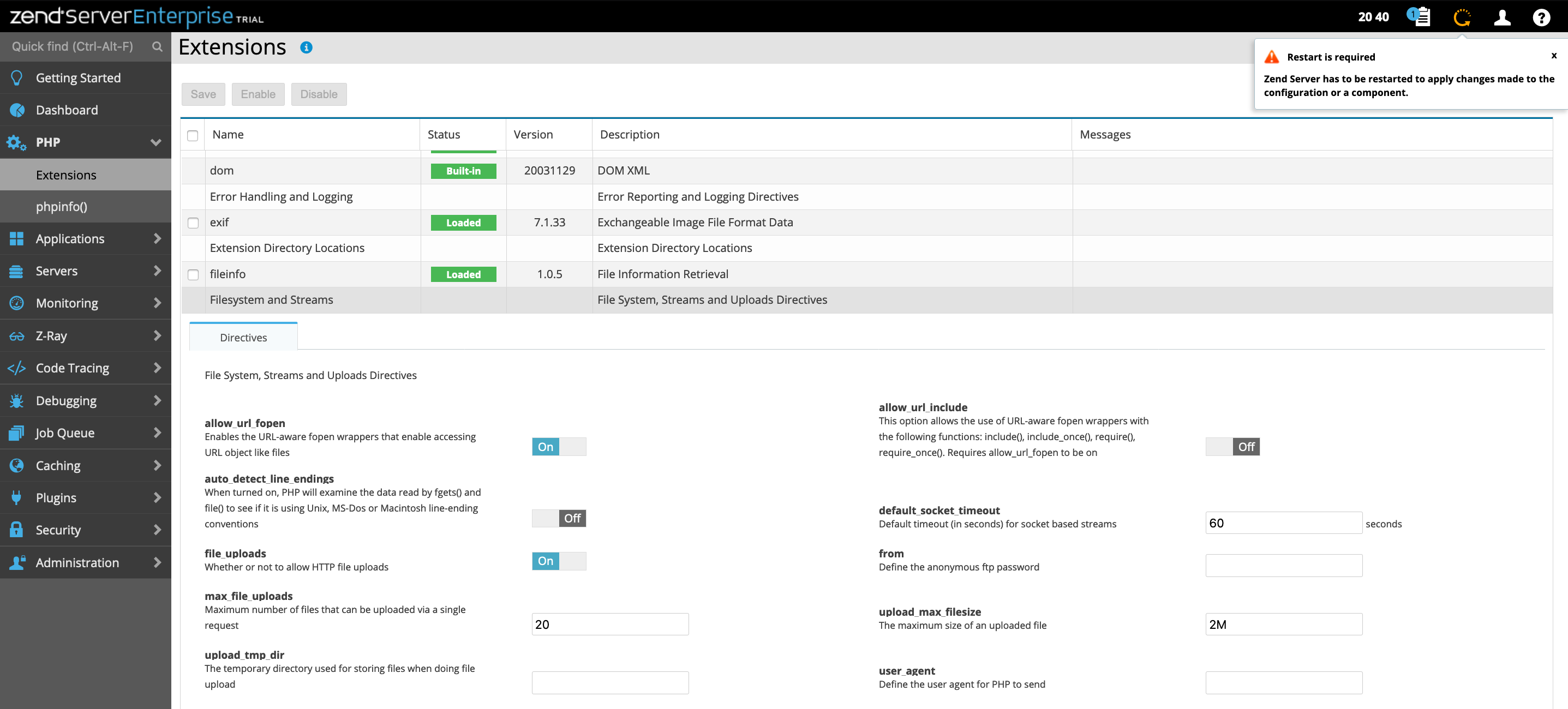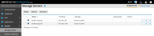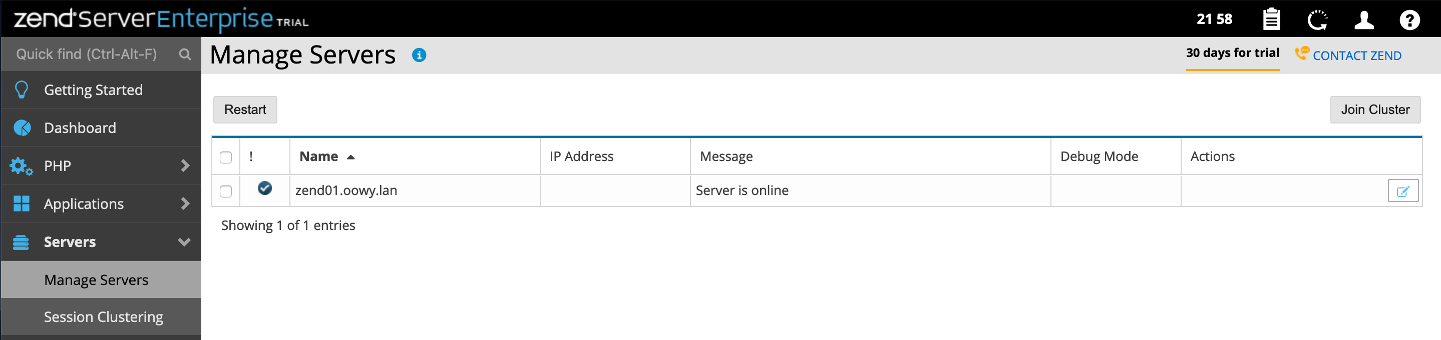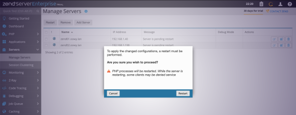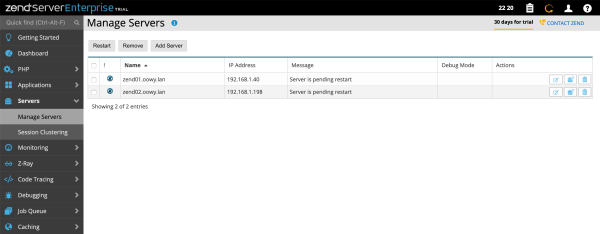 Si l'on retourne dans Servers > Manage Servers, on se rend compte que nous devons redémarrer les Zend Server