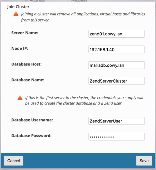 Une fois cette action réalisée, notre premier serveur fait office de premier membre du cluster.