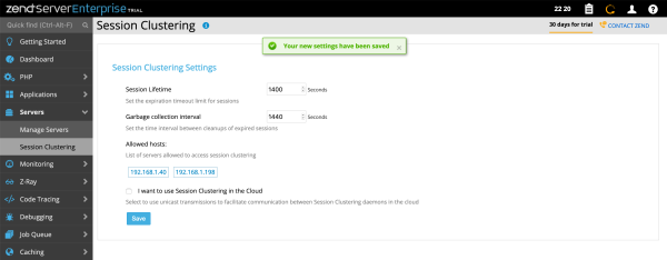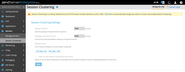 Dans Servers > Manage Servers > Session Clustering, cliquer sur “Clic here”
